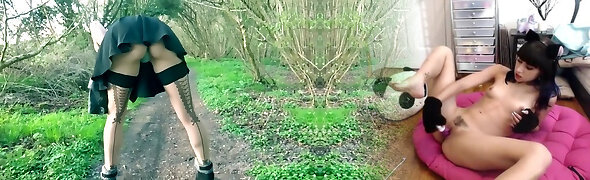 British Slut Wife In French Lace Pantyhose Stripping Off In The Forest