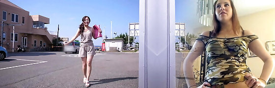 Hottest Brunette teases Delivery Stud sans Panties to give him a Handjob in a Sundress No Underwear to not making him jism