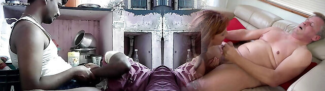 Grandma gave grandpa a super hot hooker for his birthday! This is his first three-way and he is over the moon!