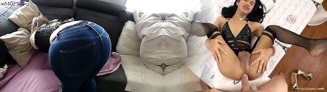 Nailing my Step Mom's big booty stuck in the sofa!