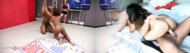 Wrestling Fight As Bella Rossi Predominates Marcelo Jerking Him Off Then Pegging